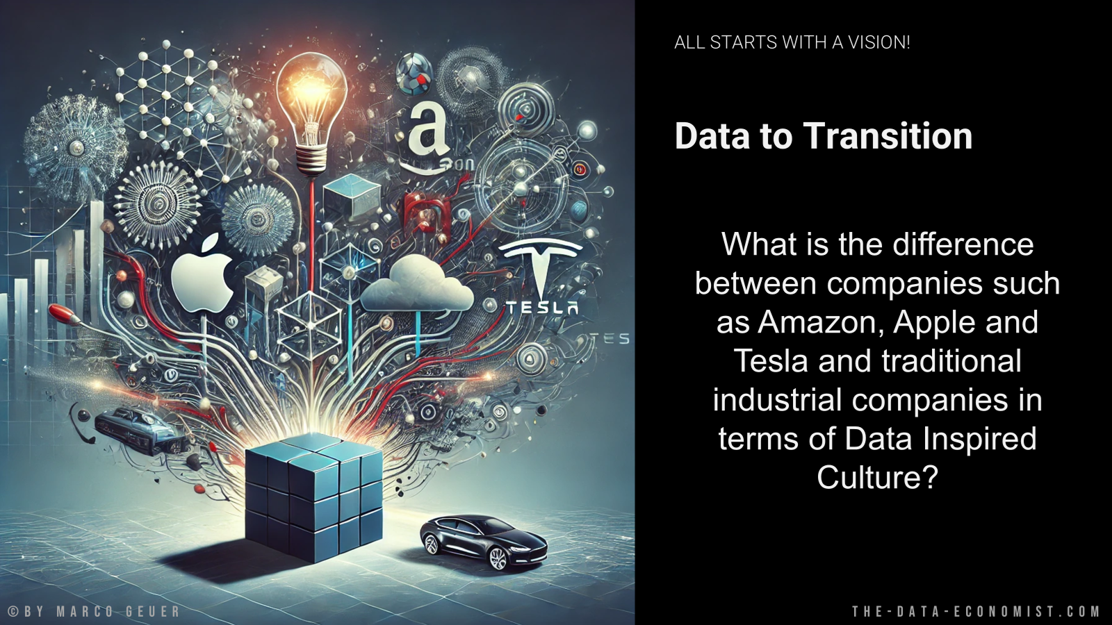 The first four pages of the document “Data to Transition: Innovative Companies vs. Traditional” highlight why a digital & AI driven culture gives modern companies a decisive advantage over traditional, one-dimensional approaches. The mapping of complex, customer-centric ecosystems that are continuously optimized by data and AI is a central aspect that distinguishes these new business models from traditional ones.